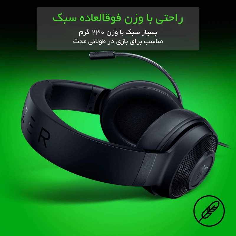 هدست گیمینگ ریزر مدل Kraken X Lite بدون قابلیت نویز کنسلینگ، جک 3.5 میلیمتری صدا، دارای قابلیت پخش صدای فراگیر مجازی 7.1 کاناله